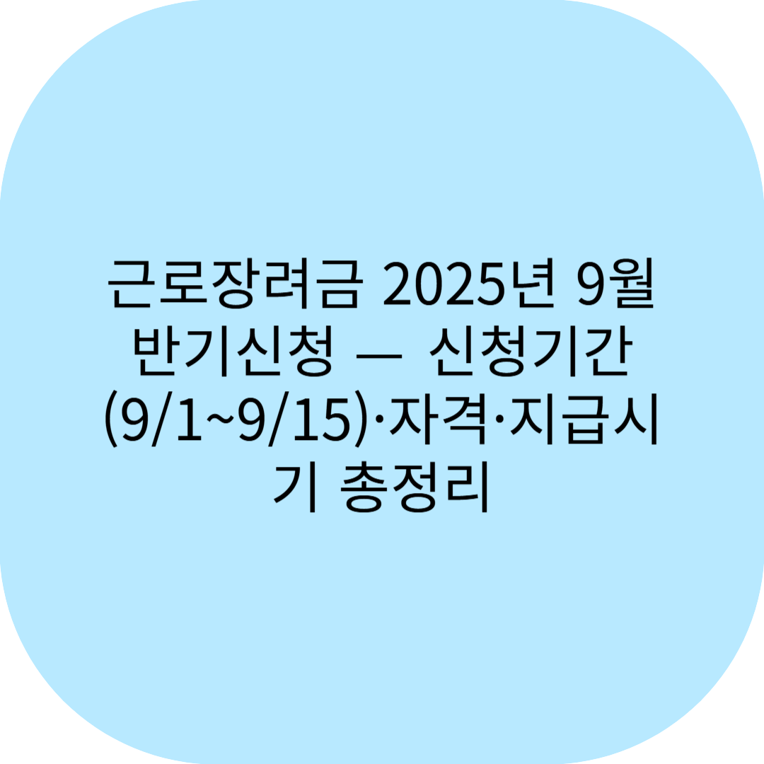 근로장려금 2025년 9월 반기신청 — 신청기간(9/1~9/15)·자격·지급시기 총정리