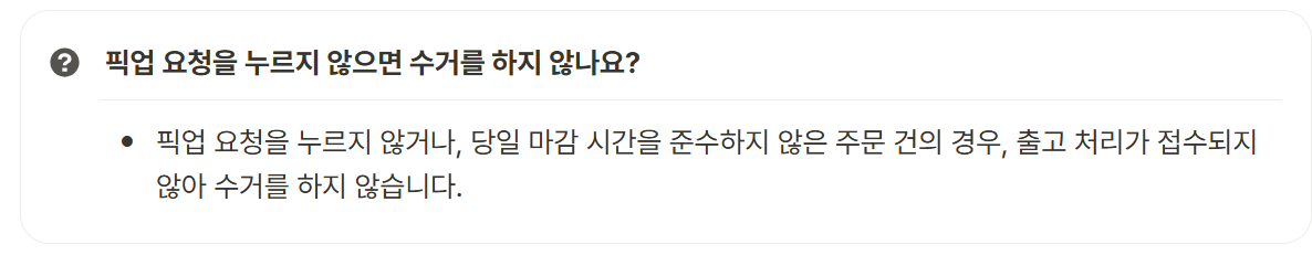 - 픽업 유의: 기사 건물 진입 불가·통화 1회 부재 시 당일 픽업 미진행, 재방문 없음.
